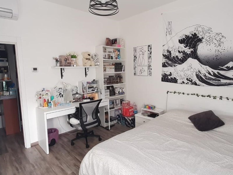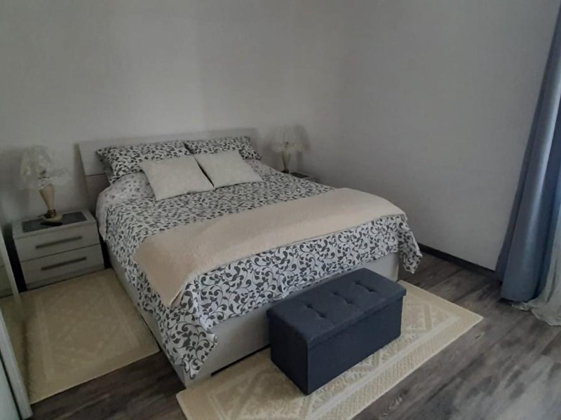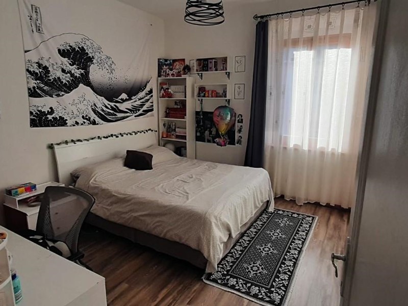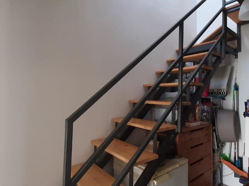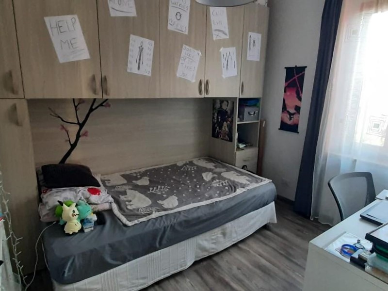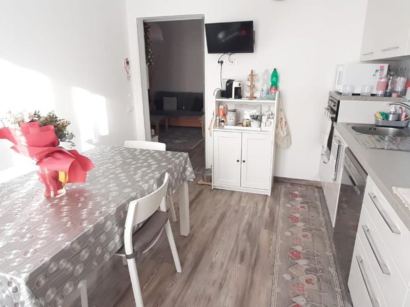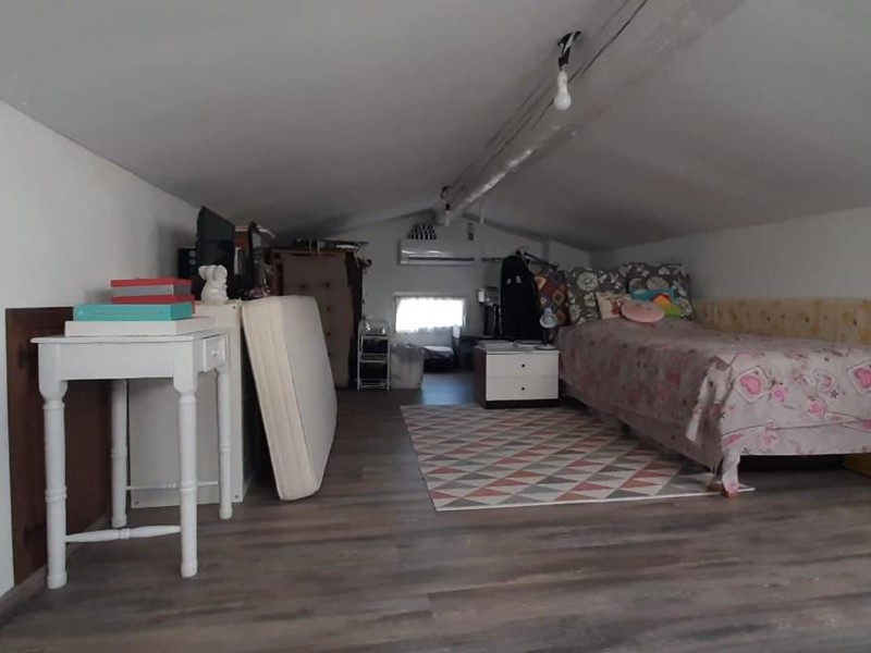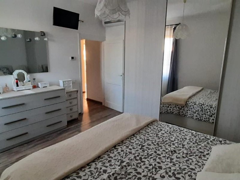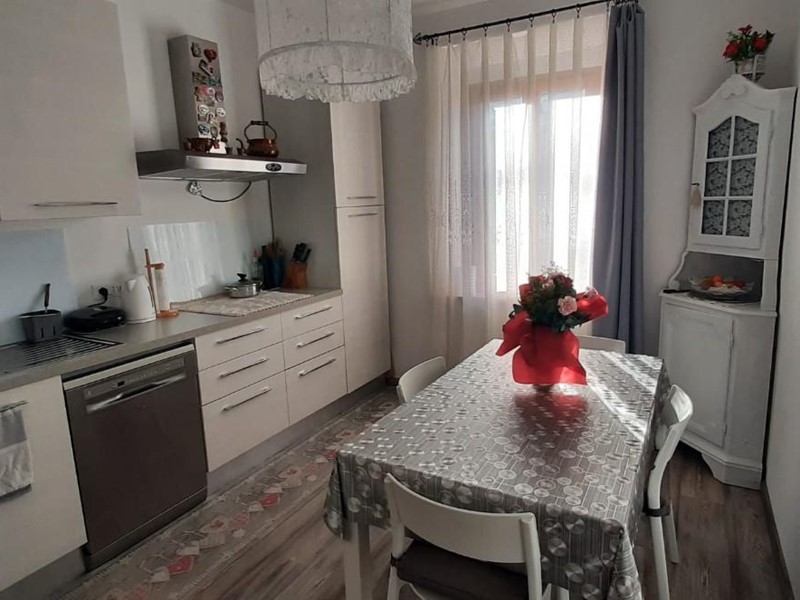 L'appartamento di 100 mq, è composto da soggiorno, tinello pranzo, disimpegno, camera matrimoniale, cameretta, bagno con doccia, disimpegno dove troviamo la seconda camera matrimoniale e il disimpegno per accedere al locale sottotetto di 28 mq., da sfruttare ad uso