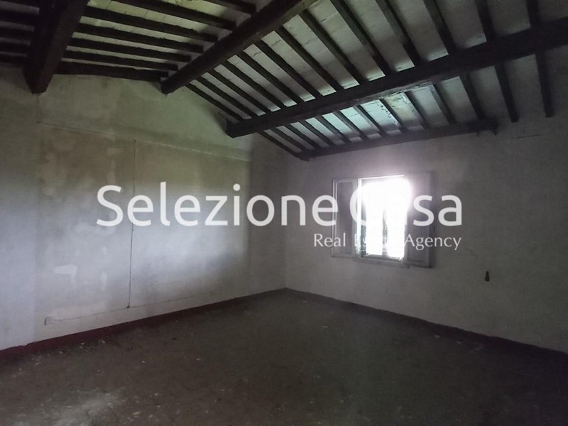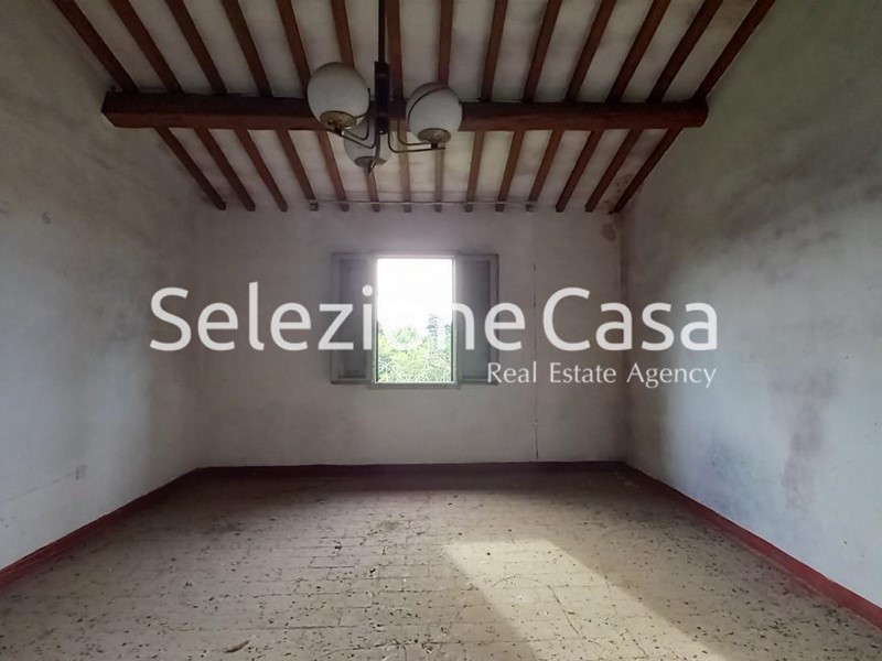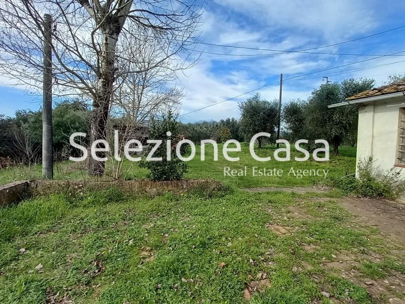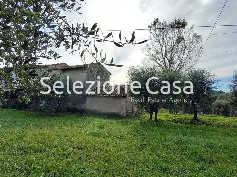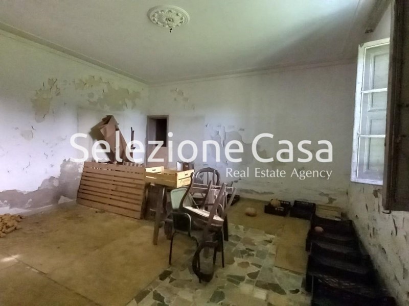 La casa, che necessita di completa ristrutturazione, è dotata di un garage esterno ed un grande giardino privato di circa 1000 mq. Oltre il giardino, prosegue il terreno agricolo circostante, in parte adatto alla coltivazione, in parte destinato ad uliveta con molte piante d'ulivo in produzione ed in parte a bosco.