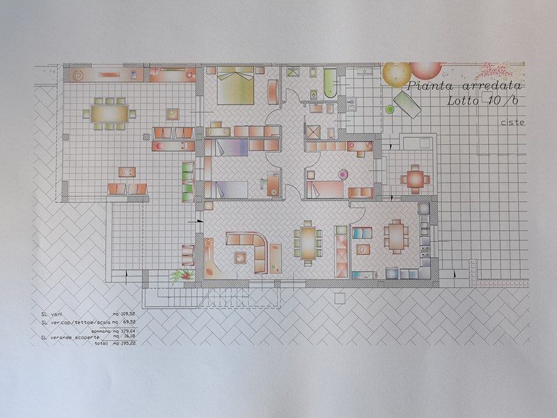 Ciascuno dei due villini previsti in progetto (simili ma non eguali) si compone di ampio soggiorno/pranzo, cucina abitabile, 3 vani letto, bagnio, wc e accessori (mq 110 circa), ampie verande coperte e tettoie (mq 60/70), il tutto per complessivi mq coperti 170/180, oltre area pertinenziale esterna di mq 1500/2000/2300.