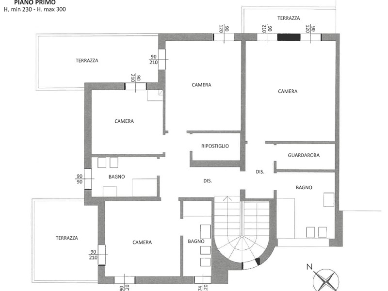 Al secondo piano si sviluppa la zona notte, composta da tre camere singole con terrazze, due bagni, due caemrette/guardaroba e una mini suite con camera matrimoniale e bagno privato.