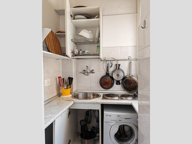 E' così composto: ingresso su sala giorno/notte con angolo cottura e con accesso diretto al balcone, bagno finestrato con box doccia e piccolo ripostiglio in quota. Pavimentazione in parquet.