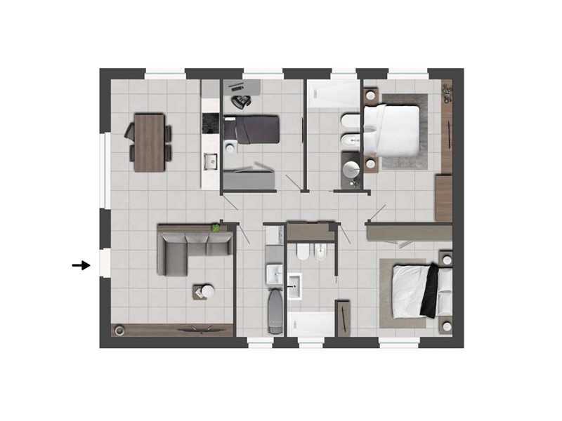 Collodi ( Pescia) - "Fabbricato A" - Prossima nuova realizzazione di villetta bifamiliare tutta su un piano tipo "viareggina" libera su 3 lati di circa 115 mq composta da: soggiorno con cucina open space, 2 camere matrimoniali di cui una con bagno in camera , 1 camera singola, bagno principale e zona lavanderia. A corredo giardino privato di circa 345 mq + 2 posti auto privati all' interno della proprietà. L immobile verrà consegnato in classe energetica A/4 con infissi in doppi vetri in pvc, predisposizione aria condizionata e allarme, e fotovoltaico di 2,5 kw. Possibilità di suddivisone degli interni e scelta dei materiali. Tempistiche di consegna entro giugno 2026. Ottima posizione e vicina ai servizi!!! Vende una società quindi immobile soggetto a iva al 4%.