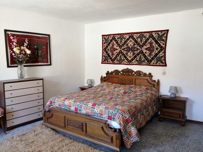 Salendo al primo piano, si accede alla spaziosa camera da letto matrimoniale, un rifugio tranquillo per il riposo. Qui si trova anche un piccolo bagno, funzionale e ben organizzato.