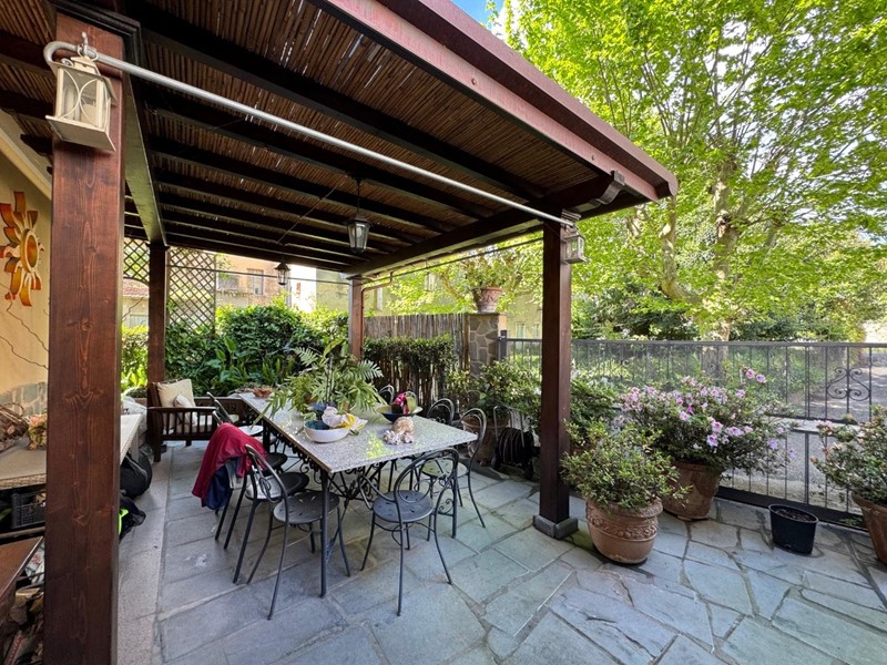 AbitarArt Real Estate propone in vendita Rif. 334 Villa a schiera di 200 Mq disposta su quattro livelli e composta al piano terra da: ingresso su sala, cucina semi-abitabile con accesso a veranda esterna e bagno con doccia; al piano primo: due camere matrimoniali con balcone, una camera singola con balcone e bagno con vasca; al piano secondo: una camera matrimoniale con bagno en suite e balcone ed una terrazza abitabile; al piano interrato: ampia taverna con camino ed un ripostiglio. Completano l'immobile un giardino lastricato su tre lati con portico ed un posto auto.
