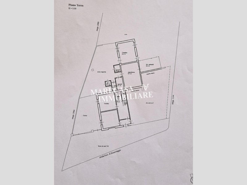 L'immobile è di 450 mq comprensivi di fondi al piano terra da sfruttare per un'attività o per garage e posti auto. L'immobile è costituito da una cucina abitabile, una sala da pranzo, quattro camere ed un bagno.