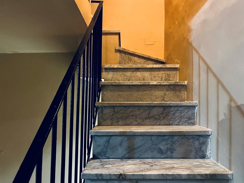Due scale ci portano a due distinti soppalchi: il primo prospiciente l'ambiente d'ingresso ed il secondo che potrebbe essere utilizzato come un piccolo vano riservato