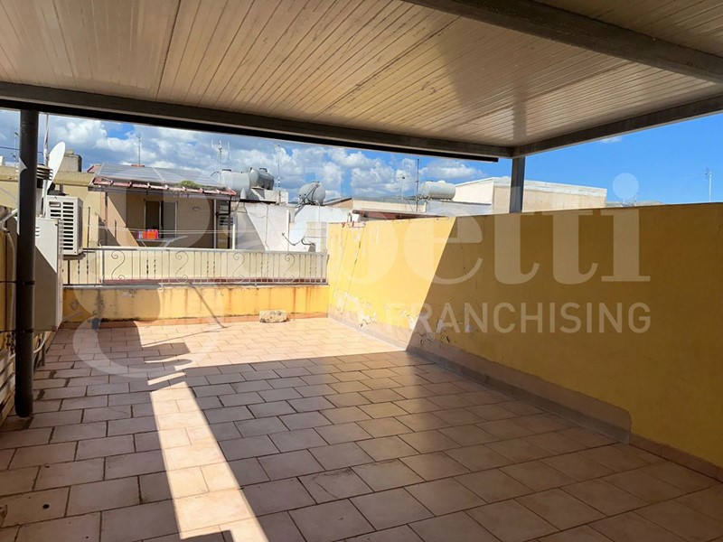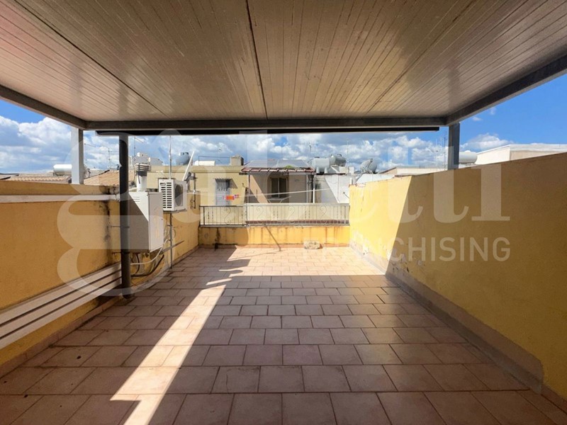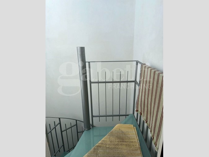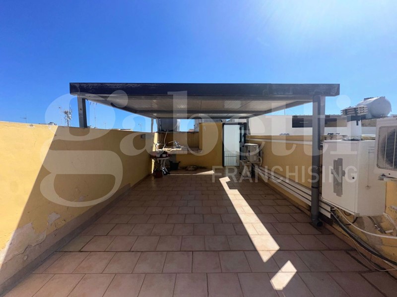 Da una scala a chiocciola posta all'interno del lucernaio, si accede all'ampio terrazzo semi-coperto da un pergolato.