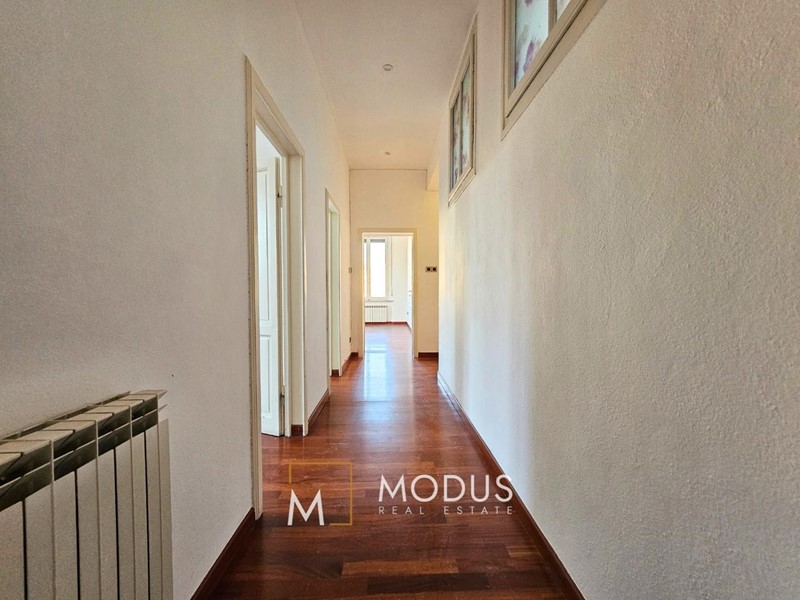 L'attuale composizione interna presenta un ingresso, due saloni di circa 30 mq cadauno, una cucina abitabile, una camera matrimoniale con bagno privato, due camere singole, il bagno principale, una zona armadi e un comodo ripostiglio.