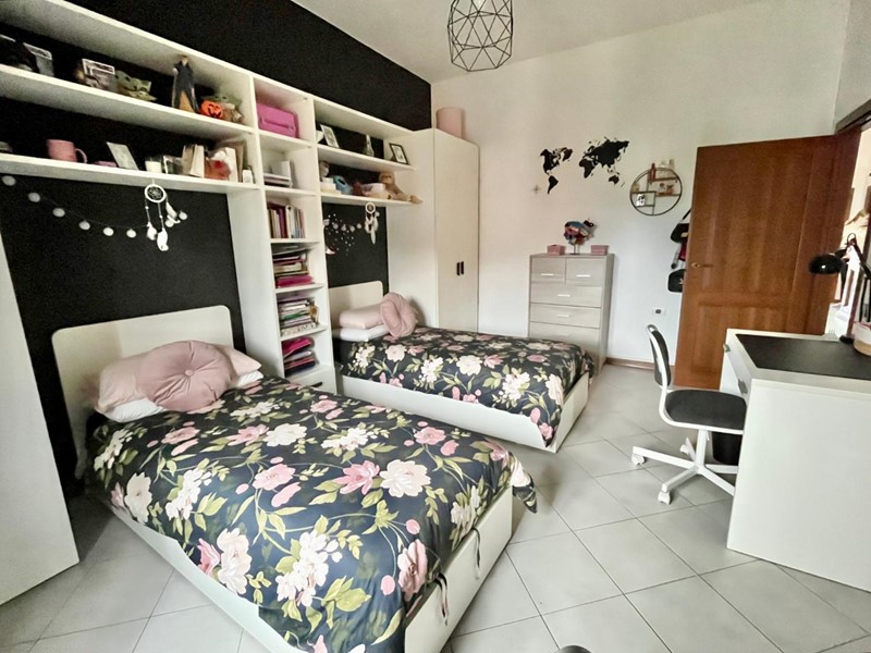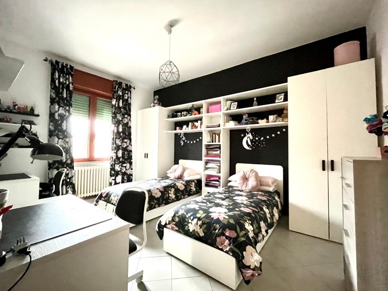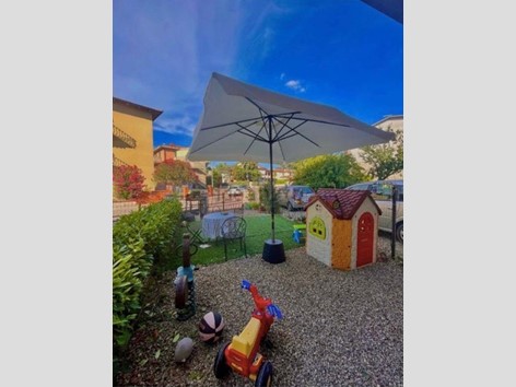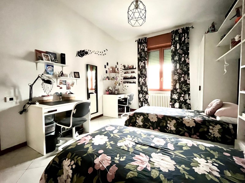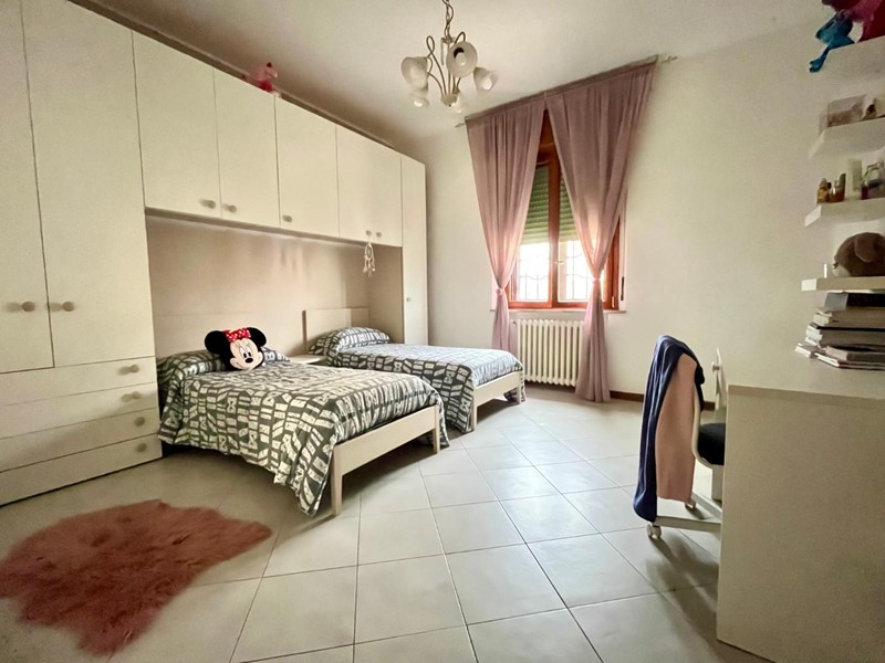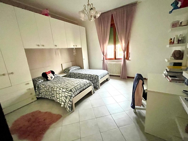 Asciano - zona residenziale. Appartamento 95 mq al piano secondo in ottime condizioni. Composto di ampio soggiorno con balcone, cucina abitabile con camino, tre camere matrimoniali di cui una con balcone, bagno finestrato con doccia, ripostiglio. Infissi termici ed antirumore nuovi. A piano terreno ampia taverna con cucina, cantina, resede con posti auto e giardino esclusivo.