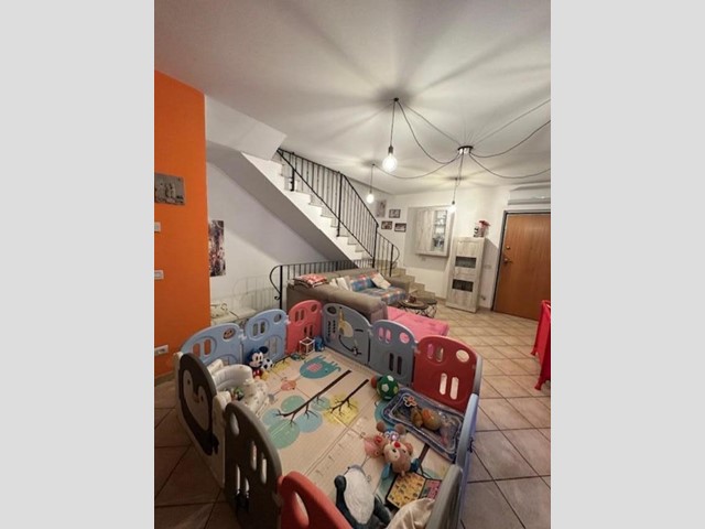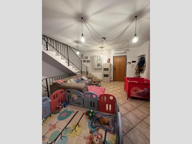 L'immobile, di circa 150 mq, è disposto su due livelli e si compone di un ampio soggiorno cucina, bagno con antibagno a piano terra tre camere da letto, bagno e due balconi a piano superiore; al piano inferiore troviamo un'ampia taverna