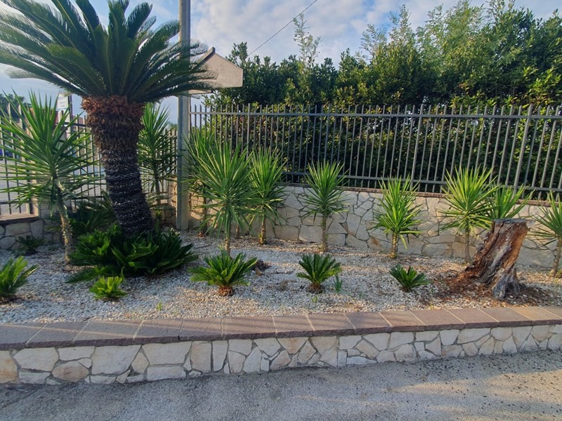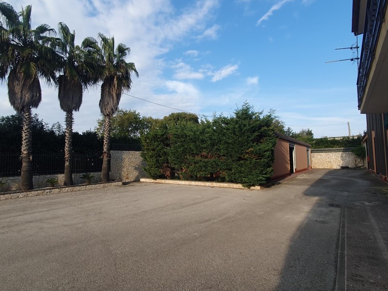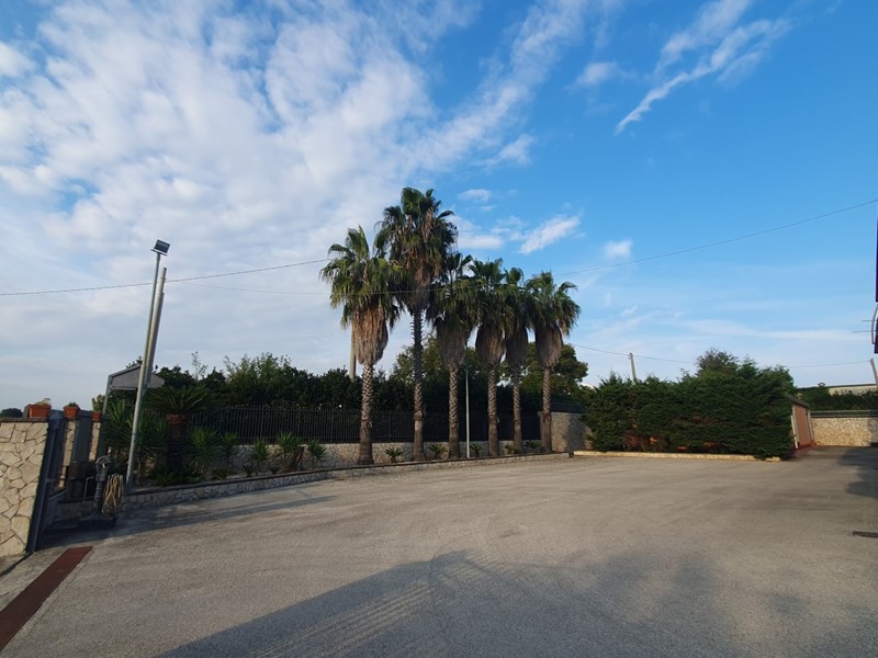 La soluzione circondata da cancelli e alte palme , ha la sua entrata autonoma con un ampio spiazzale per svariati posti auto .