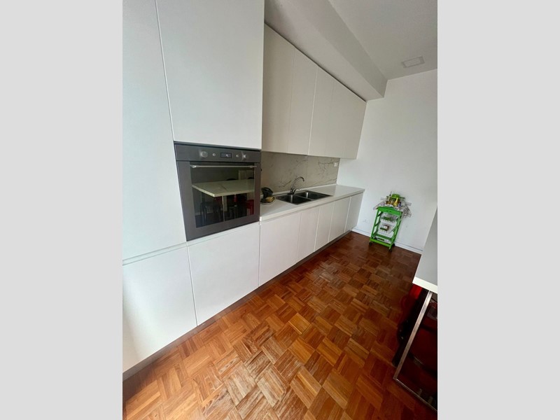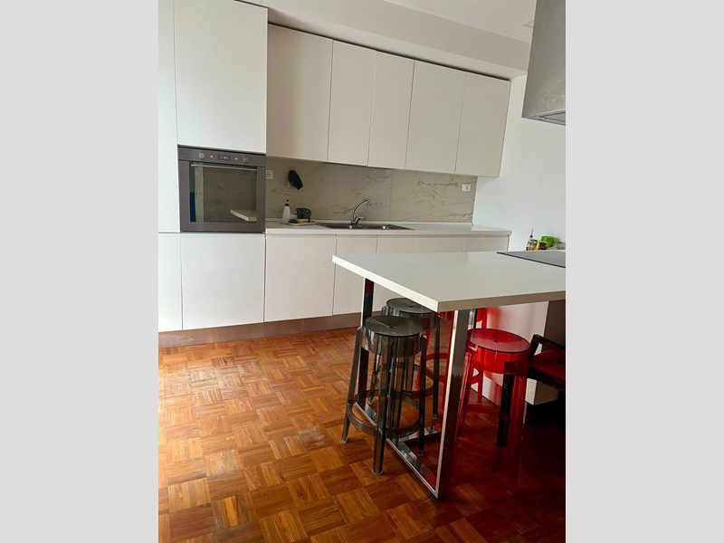 L’appartamento si apre su un ampio disimpegno che conduce a un luminoso salone, ideale per momenti di relax o per accogliere gli ospiti. La cucina abitabile è un vero gioiello: arredata con mobili moderni e un’isola centrale, rappresenta il cuore della casa, perfetta per chi ama cucinare e vivere la convivialità.