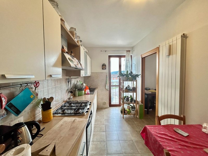 SOVICILLE- Vendesi luminoso e panoramico appartamento di mq. 103 su due livelli su fabbricato costruito nel 2000. . L'immobile è posto al secondo piano ed è composto da ampio soggiorno, cucina abitabile, camera matrimoniale, cameretta e bagno finestrato. Ottime condizioni . Tramite una scala si accede ad una mansarda con un unico vano da personalizzare in base alle proprie esigenze. L'ambiente è corredato di una terrazza a tasca di mq. 5. Completa la proprietà un garage di mq. 41. Certificazione Energetica: classe G, indice 160,00 kWh/ m2 anno
