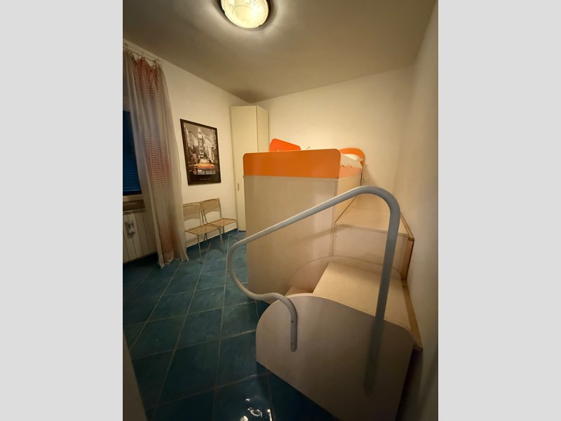Appartamento situato in piccolo condominio a 30mt dal mare composto da soggiorno, cucinotto, camera matrimoniale, camera doppia, bagno e cantina .