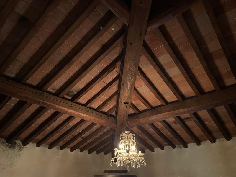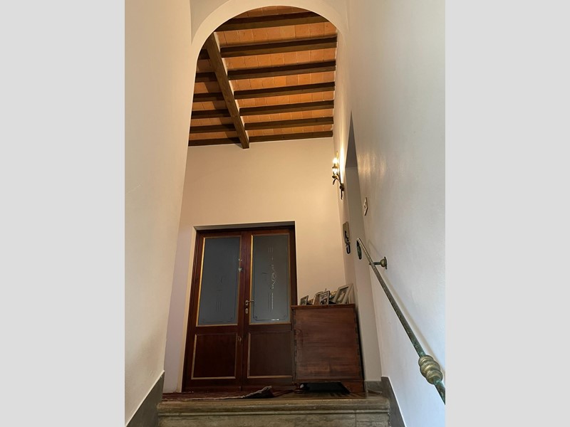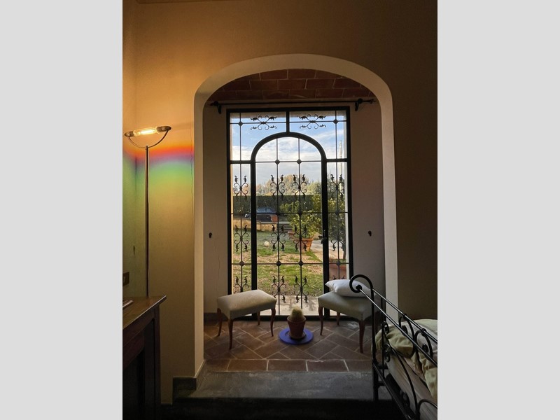 La villa principale, di circa 450 mq, è una vera dimora signorile. Il piano terra accoglie la zona giorno con ampi ed eleganti saloni: un soggiorno con grande camino in pietra, una cucina abitabile che si apre sul giardino, una sala da pranzo, una sala biliardo e uno studio. Al piano superiore si trova la zona notte, che ospita una grande suite matrimoniale con camino e bagno privato, due camere da letto aggiuntive e un altro bagno.