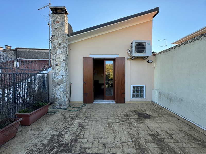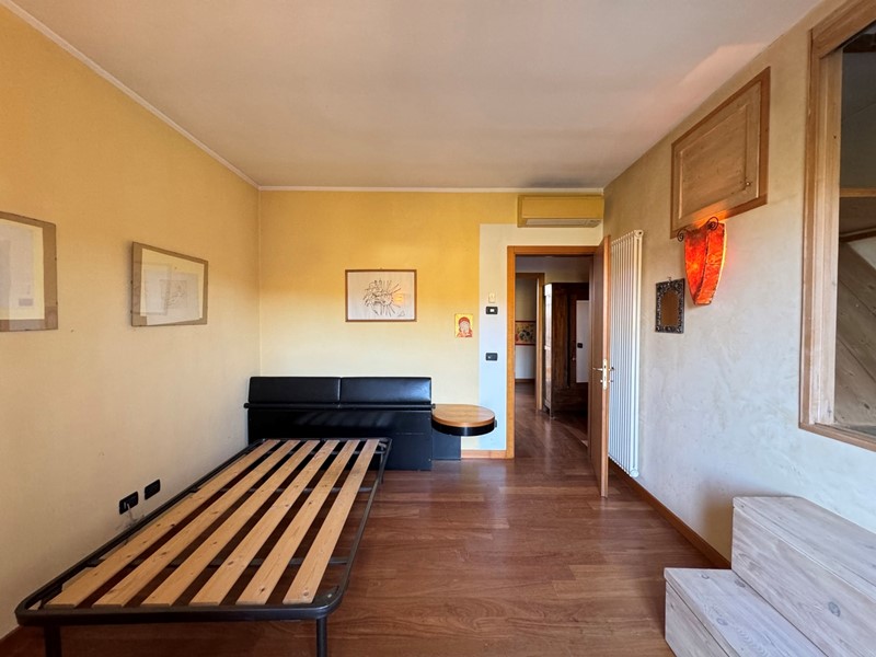 Al piano superiore sono presenti due camere da letto. La luminosità naturale e la disposizione degli spazi rendono ogni ambiente piacevole e accogliente. Una delle camere dispone di terrazzo che offre una vista panoramica sul paese e spazio sufficiente per arredarlo con piante. Infine è presente un bagno completo con box doccia.