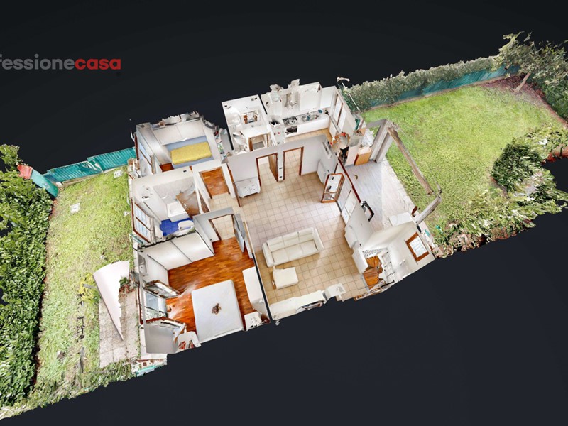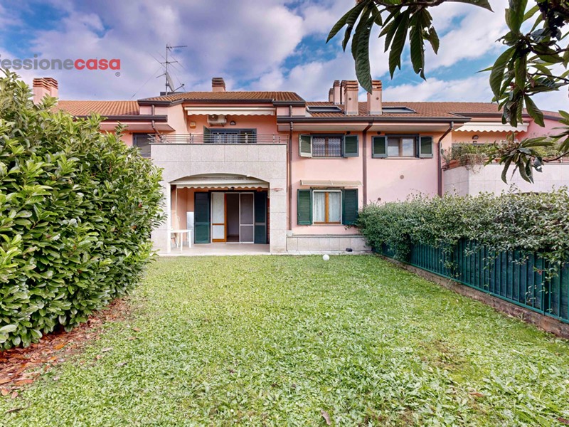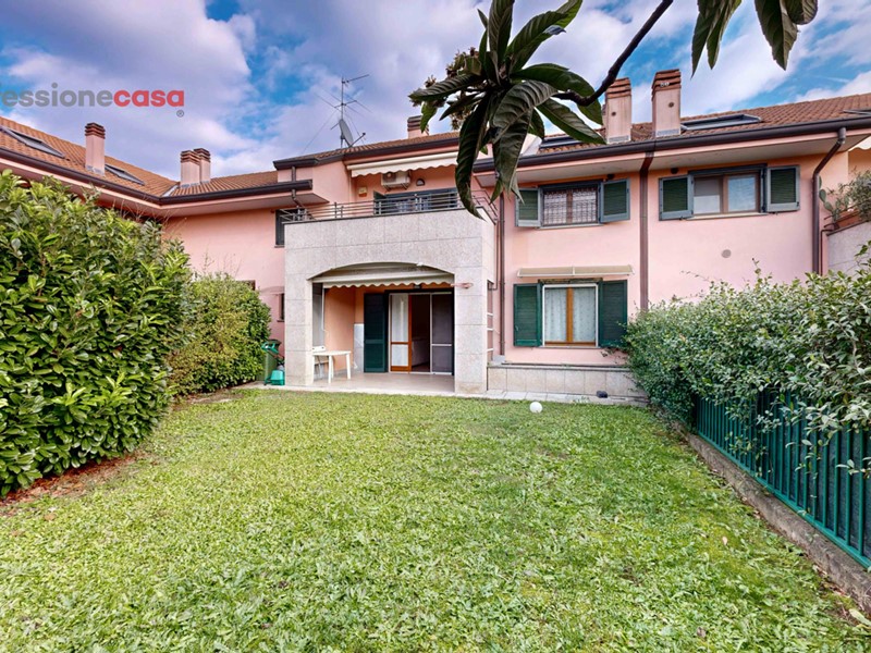 Caratteristiche principali: ? Spazioso soggiorno con accesso diretto al patio verandato ? Ampio giardino privato su due lati, perfetto per gli amanti della vita all'aria aperta ? Cucina abitabile per momenti conviviali ? Due camere da letto luminose ? Doppi servizi per massimo comfort ? Taverna al piano seminterrato, ideale come sala hobby o spazio multifunzionale ? Box doppio di 21 mq