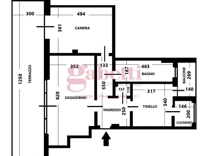 COMPOSIZIONE INTERNA Piano 6°: ingresso, soggiorno, tinello con cucinino, camera da letto, bagno, ripostiglio, un balcone e un terrazzo di 37 mq.