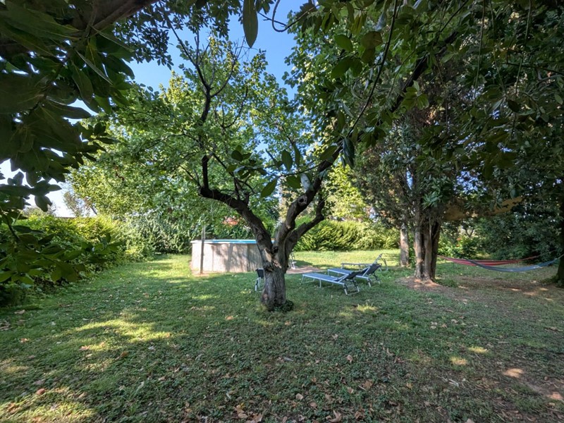 La casa è circondata da una corte di circa 2000 di terreno su cui insistono una rimessa di 40 mq. completamente ristrutturata e vari annessi accatastati come magazzini per altri 90 mq. E' dotato inoltre di una piscina fuori terra .