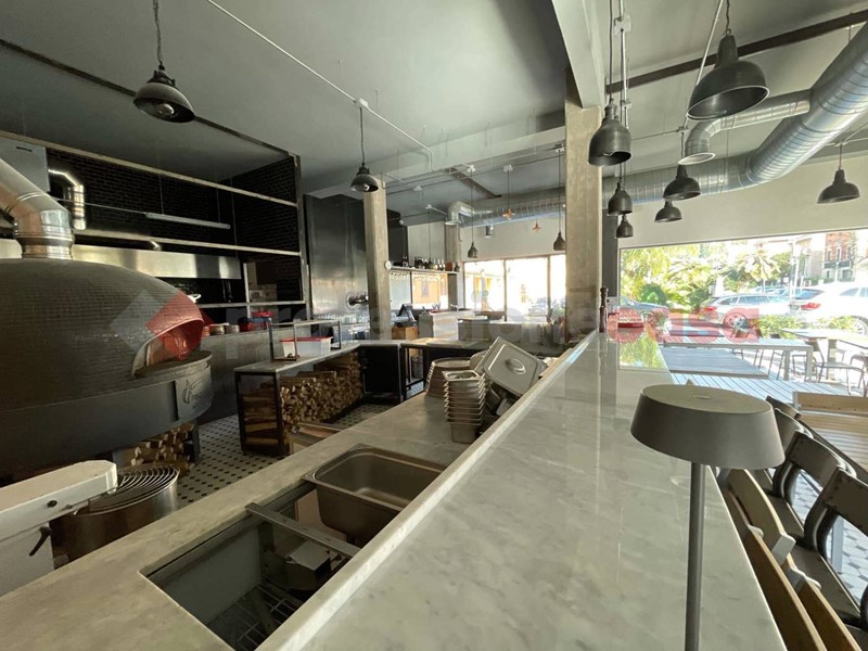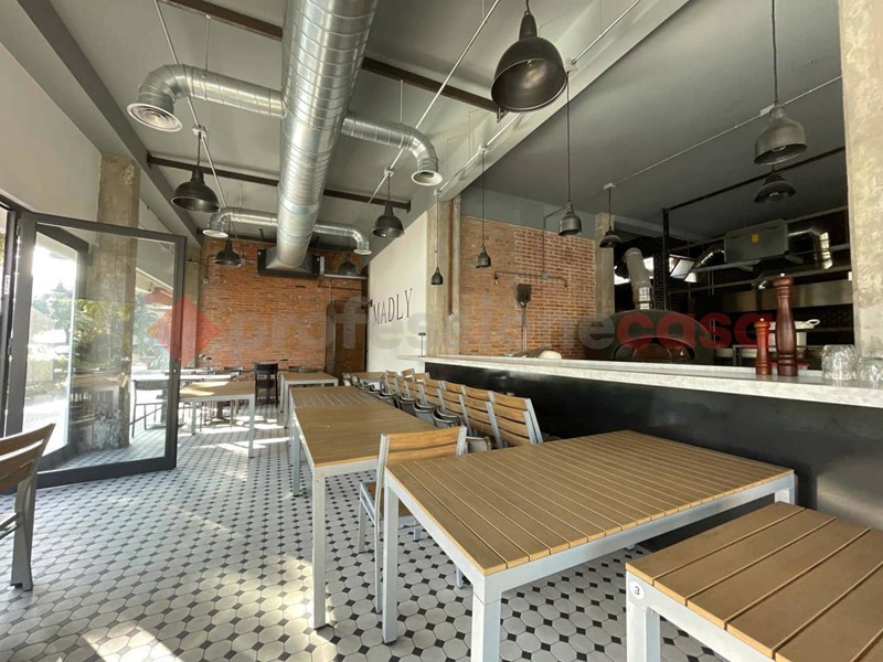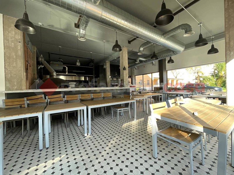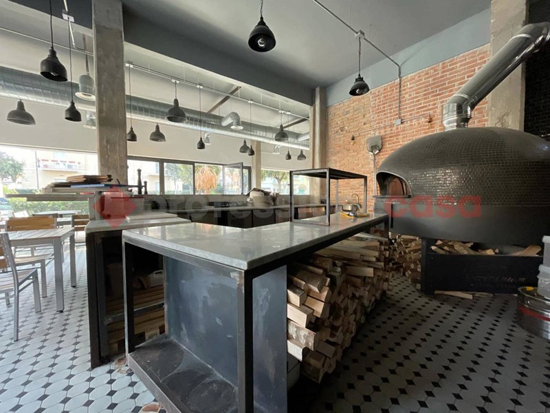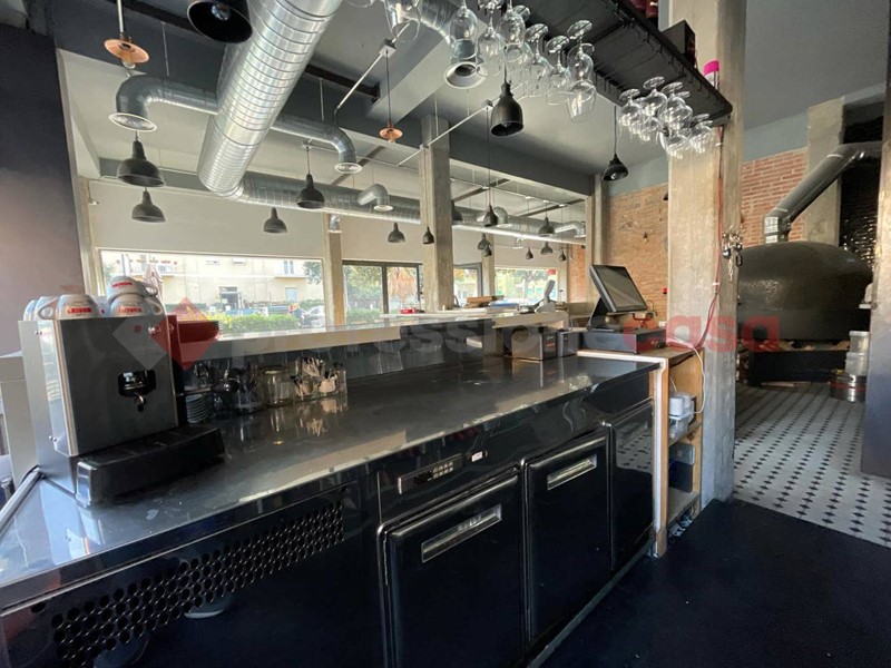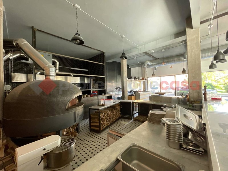L'accogliente sala ospita un ampio spazio per i tavoli, egregiamente stigliata con un meraviglioso Forno pizza a legna a vista di ultima generazione, banchi lavorazione, friggitrice, impastatrice, frigoriferi, cucina, zona lavaggio, bancone bar per beverage con spillatori birra e macchina del caffè oltre ad ampio bagno per la clientela.