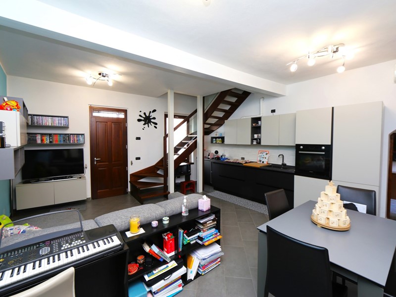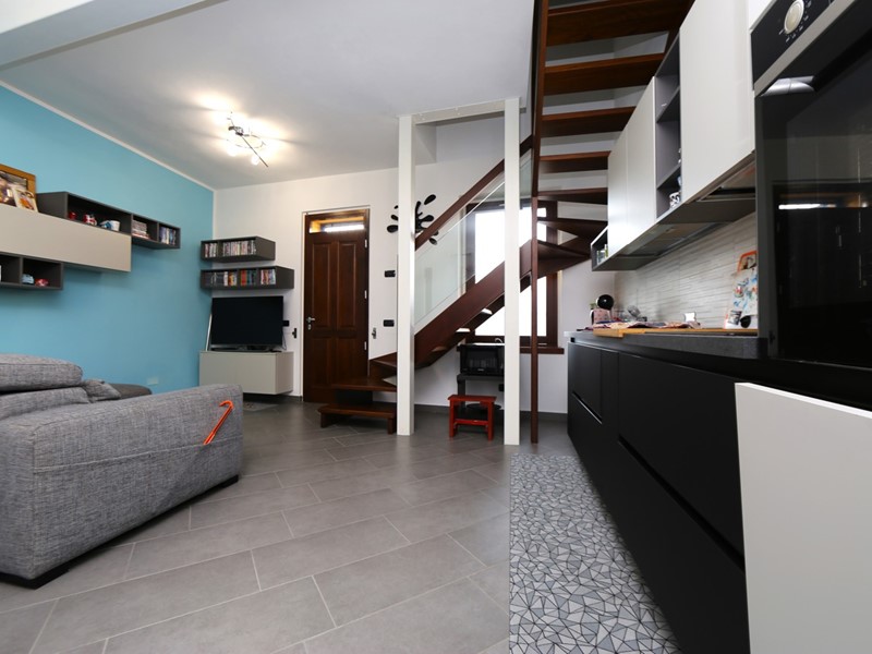 La soluzione ha ingresso al piano terreno dove si sviluppa la zona giorno con cucina a vista, tramite meravigliosa scala interna in legno si accede al piano superiore dove troviamo la zona notte composta da camera da letto e studio servito da balcone, dal disimpegno si ha accesso ad un grazioso terrazzo coperto.