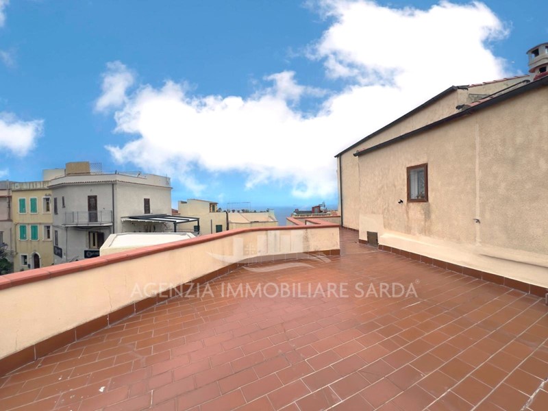 Sia dal salone che dalla cucina di questo piano si accede alla bellissima terrazza di circa 43 mq con vista a 180 gradi. Il panorama mozzafiato spazia dal monumento ai caduti, ai viottoli del centro storico, al Castello dei Doria. Sui tre lati è visibile il mare.