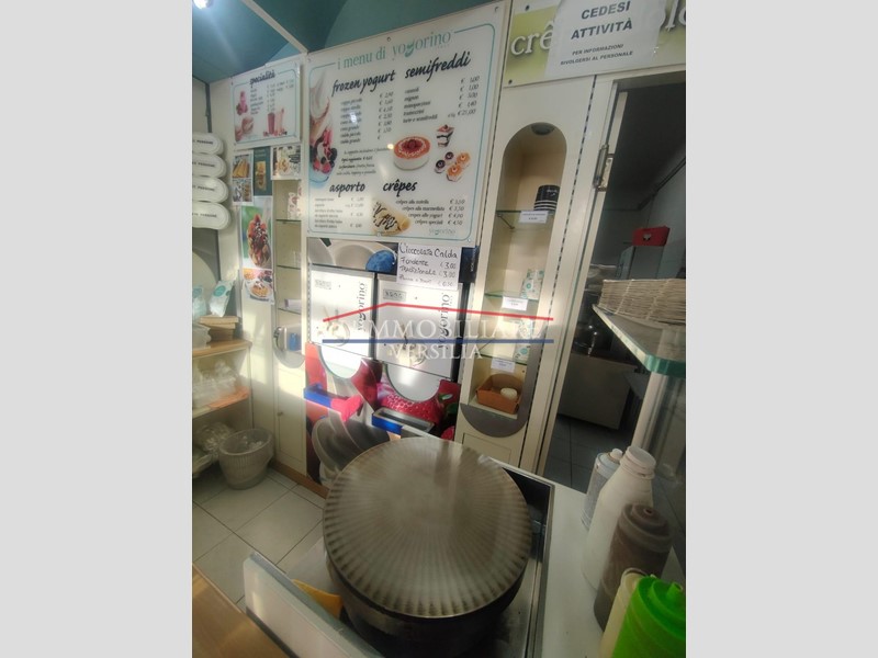 AFFARE PER INTENDITORI !!! Nel centro della splendida Marina di Massa, a pochi passi dal mare, viene ceduta importante attività di PASTICCERIA ,CREPERIA, YOGURTERIA che può contare oltre alla posizione strategica, su importante clientela fidelizzata, sul forte passaggio pedonale del centro e su uno SPAZIO ESTERNO comprensivo di 20 posti a sedere. Incassi dimostrabili. L'ATTIVITA' viene ceduta compresa di attrezzature ben tenute ed arredi: FRIGORIFERI, PIASTRE PER CREPES, 2 MACCHINE MISCELATORI PER YOGURT, MACCHINA PER WAFER, un grande BANCONE CON ALIMENTZIONE FREDDO/CALDO, FORNETTO MICROONDE, BILANCIA, ecc. Sul retro un grande LABORATORIO con BANCO DI LAVORO IN ACCIAIO E LAVELLO. Lo stesso spazio, separato da locale d'ingresso rimuovendo una semplice parete divisoria di cartongesso, potrebbe essere utilizzato come SALETTA INTERNA, molto utile per il periodo invernale essendo attività aperta estate/inverno.
