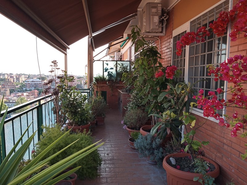 Attico panoramico luminoso completamente ristrutturato internamente ed esternamente, con terrazza 3 esposizioni con tettoia e tende da sole. Cucina, tinello, due camere matrimoniali, soggiorno, due bagni in muratura, ingresso, corridoio, porta blindata. Armadio a muro, soppalco. Riscaldamento autonomo con condizionatori a pompa di calore; con soffitta finestrata e box soppalcato con serranda elettronica. Zona La Parrocchietta - Via Portuense. No assoluto intermediari (agenzie e venditori).