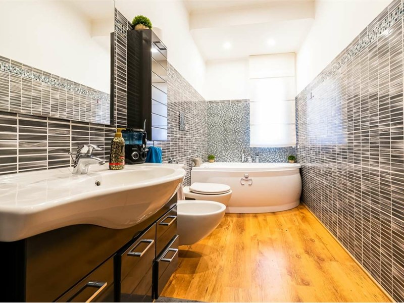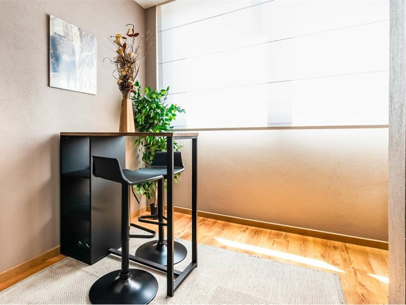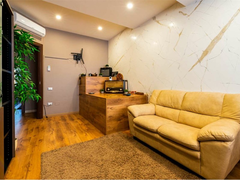 Troviamo, soggiorno con cucina separata , bagno con box doccia idromassaggio, rifinito con pavimentazione in laminato .