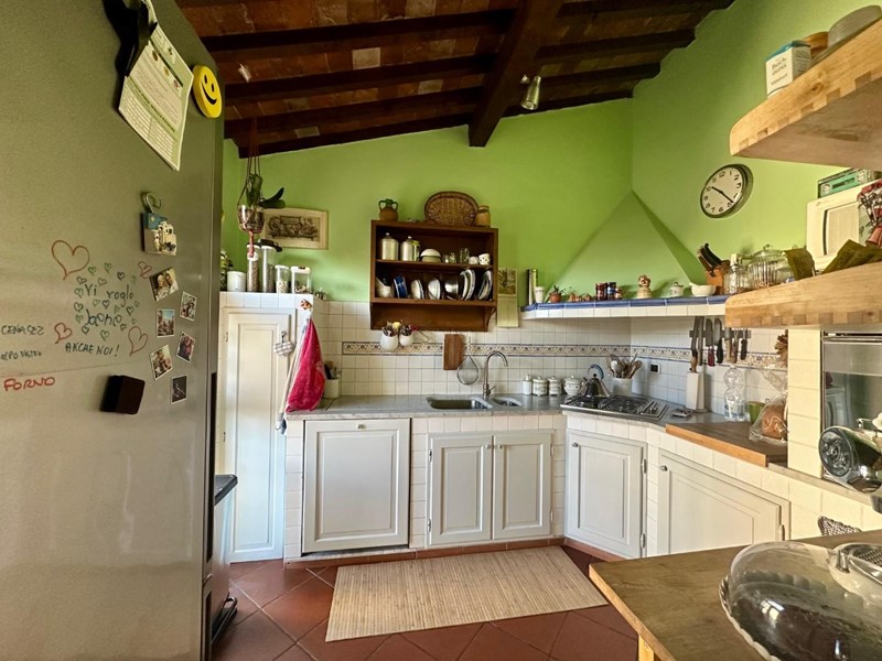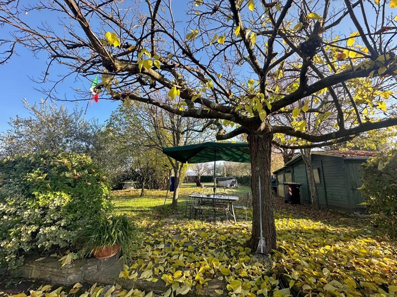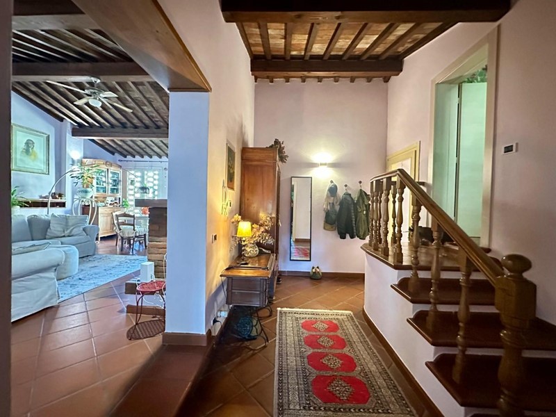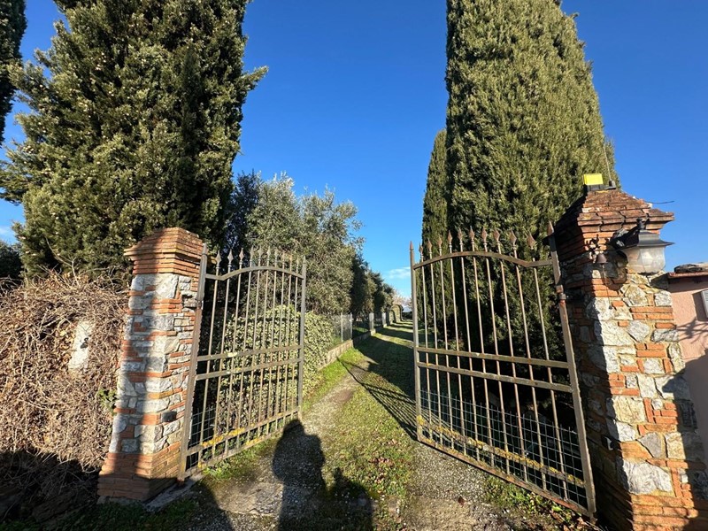PORZIONE DI RUSTICO ANGOLARE CON GIARDINO PRIVATO: In contesto di corte proponiamo porzione di Rustico Toscano libero su tre lati con terreno di circa 1000mq soleggiato dove vi è una casetta in legno, piscina esterna e posti auto scoperti. La proprietà è tutta recintata e l'accesso avviene tramite un cancello carrabile che conduce a un bellissimo viale alberato.