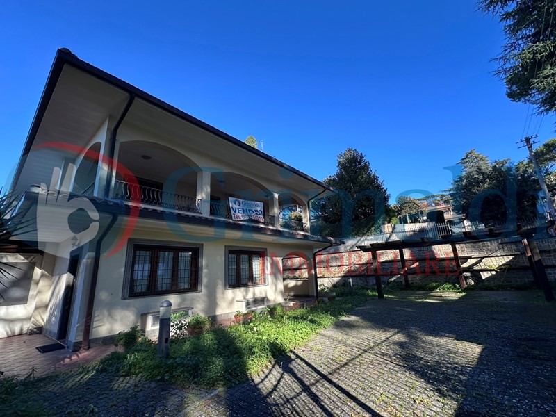 GROTTAFERRATA CENTRO - VIA DEL FICO - In via Del fico, zona altamente signorile, esclusiva e residenziale ma allo stesso tempo ben collegata e vicina al centro di Grottaferrata, proponiamo la vendita di una villa di oltre 300 mq più ampio giardino privato disposta su due livelli oltre sala hobby. Al piano terra troviamo un accogliente patio coperto, ingresso, salone doppio, cucina, un servizio, ripostiglio e portico coperto con cucina esterna . Al primo piano troviamo tre ampie camere da letto, due servizi, ampio balcone ed un ampio terrazzo di oltre 30 mq. con ottima esposizione. Al piano seminterrato c'è un'ampia sala hobby con camino, una camera, un servizio ed un ripostiglio. Completa la proprietà un ampio garage privato di oltre 20 mq ed una soffitta a copertura accessibile tramite scala estendibile. Buone condizioni interne, completamente ristrutturata nei servizi ed impianti, sia elettrico che idraulico circa 10 anni fa, le rifiniture e i materiali utilizzati sono di gran pregio, i pavimenti sono in parquet, gli infissi con doppio vetro ed inferriate di sicurezza. L'esposizione tripla ed il contesto esclusivo garantiscono sole, tanta luminosità e tranquillità, pur essendo posizionata a ridosso del centro di Grottaferrata e di Via Anagnina, arteria che consente veloci collegamenti in auto e con i mezzi pubblici sia verso Roma che verso la zona dei castelli romani.