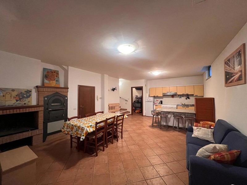 Il piano seminterrato offre una grande taverna con camino, forno a legna e stufa a pellet, perfetta per organizzare cene con amici e parenti in un'atmosfera accogliente e calda. Troverete anche un ulteriore bagno e un ripostiglio per tenere in ordine gli oggetti di uso quotidiano.