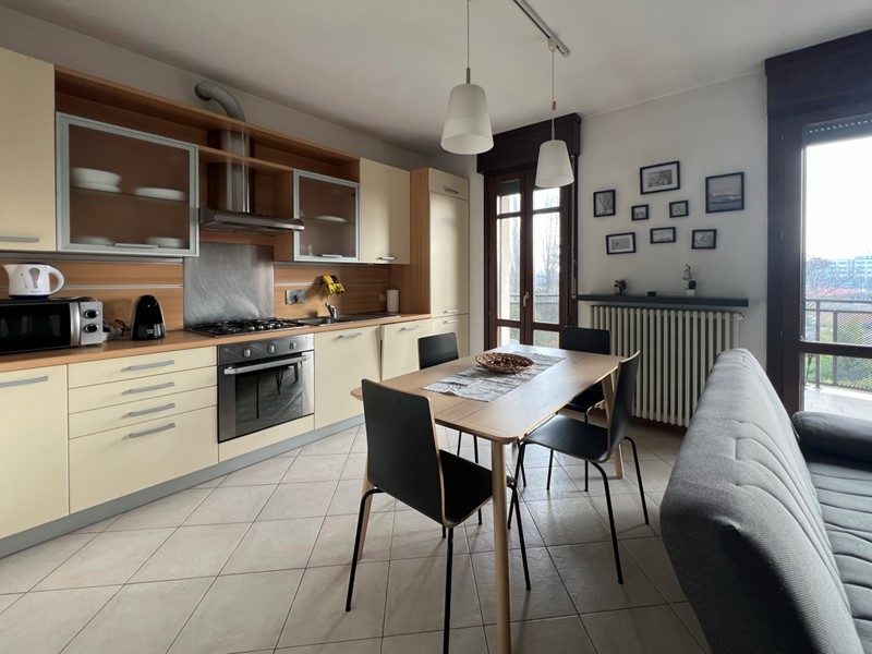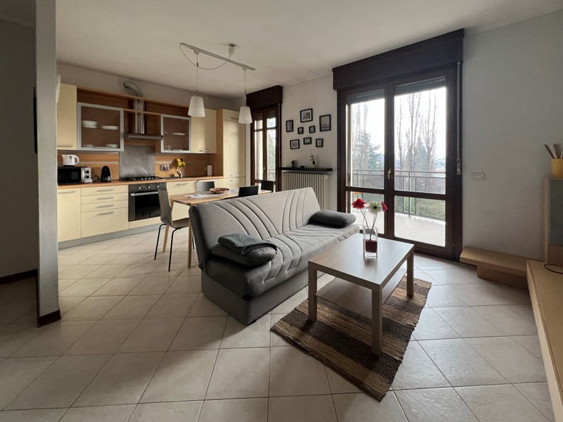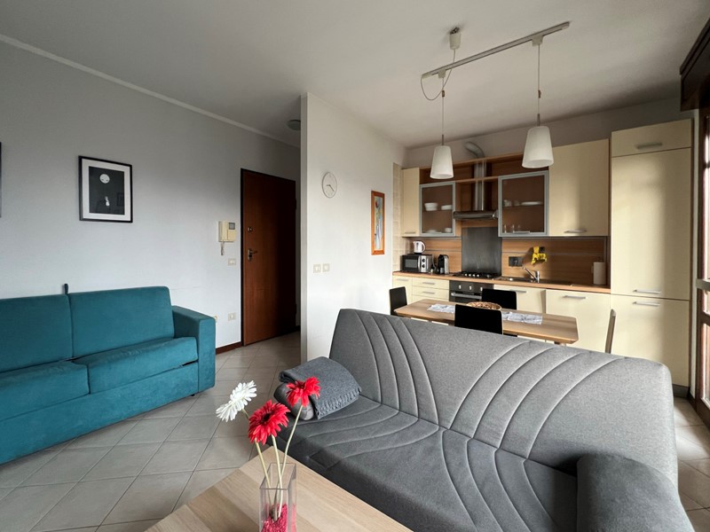 In Elegante Palazzina del 2004 proponiamo Appartamento posto al Terzo ed Ultimo piano con ascensore, composto da: Ampio Soggiorno con cucina a vista e terrazzo, disimpegno, due camere da letto, di cui una servita da ampio balcone, e bagno. Cantina, posto auto e Garage di proprietà. L'immobile viene venduto Arredato.