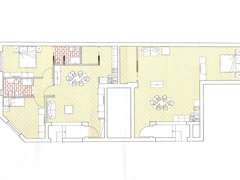 CAPOLUOGO -Centrale a due passi dalla stazione e dai principali servizi, appartamento molto luminoso caratterizzato da grandi superfici vetrate, in fase di rifacimento a nuovo , di oltre 90 mq. al piano terra con resede esterno utilizzabile come doppio posto auto privato, cosi disposto:loggia ingresso, ampio salone, cucina, disimpegno, due camere matrimoniale, due bagni. L'immobile finito previsto in classe energetica A avrà riscaldamento a pavimento, pompa di calore e sarà caratterizzato dagli ampi infissi per esaltarne la luminosità. Allo stato attuale sono possibili interventi atti ad adeguare e personalizzare sia la disposizione interna che la scelta dei materiali alle proprie esigenze. Il progetto prevede anche la possibilità di una disposizione con tre camere.