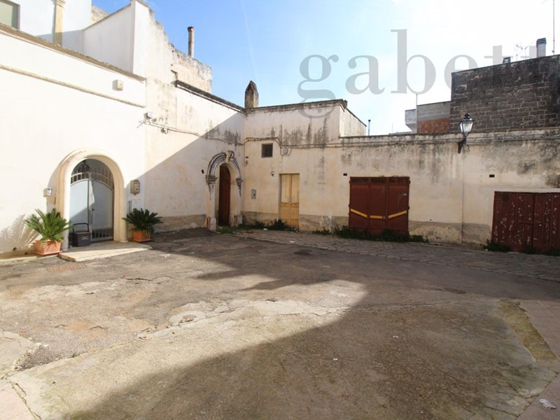 Abitazione d'epoca a pochissimi metri dalla centralissima via C. Mariano a Copertino. L'immobile, strutturalmente solido, necessita tuttavia di interventi di rifacimento e restauro; misura circa 450 mq. ed è suddiviso in 14 vani di cui 12 al piano terra e 2 al primo piano, tutti recanti volte a stella, a botte e a crociera. Precede l'ingresso all'abitazione una corte riservata antistante di circa 20 mq., oltre ad una corte interna di pertinenza di ulteriori 90 mq. ed un giardino di esclusiva proprietà esteso per 600 mq. circa. Rif.: CO 104a.
