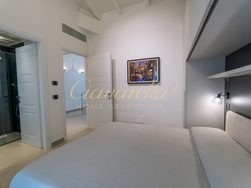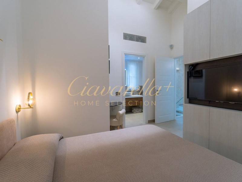 Al primo piano, la villa dispone di tre camere da letto indipendenti, ognuna con bagno privato e accesso diretto alla grande terrazza, che offre una vista panoramica sul giardino e la piscina. Ogni stanza è pensata per garantire il massimo del comfort e della privacy.