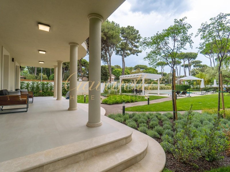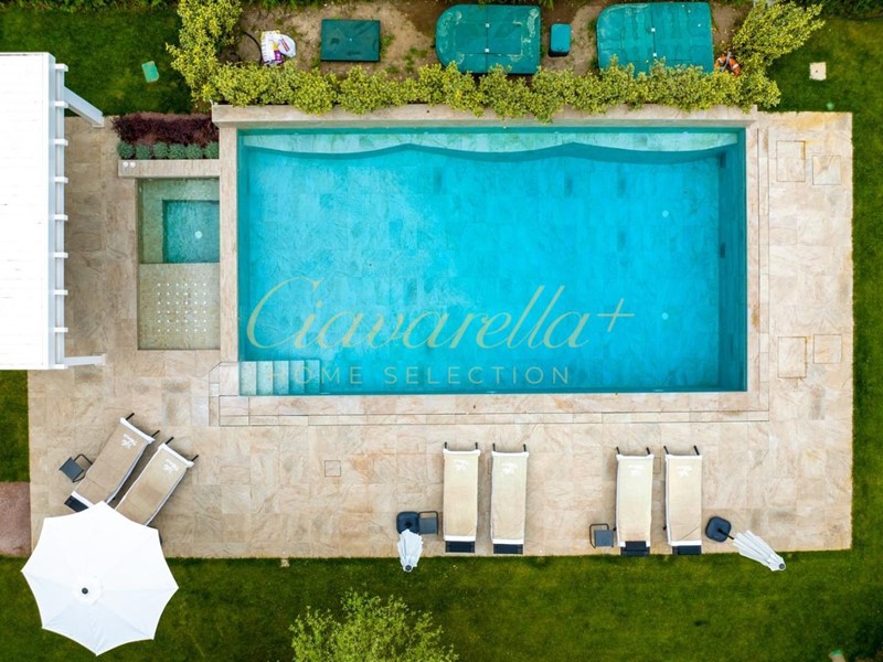 Il giardino è un vero e proprio angolo di paradiso, arricchito da un gazebo a bordo piscina, ideale per cene all'aperto e momenti di convivialità. La zona prendisole, attrezzata con lettini e una rilassante zona idromassaggio, offre il massimo del benessere, mentre la piscina scenografica con cascata aggiunge un tocco di eleganza e serenità.