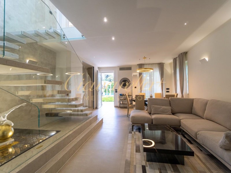 Gli interni della villa sono arredati con uno stile moderno e di design, con finiture di alta qualità e una cura particolare per ogni dettaglio. Gli impianti all’avanguardia, tra cui domotica, sistema di allarme e aria condizionata, assicurano il massimo del comfort e della sicurezza. La domotica permette di controllare in modo facile e intuitivo l'intera abitazione, mentre gli impianti tecnologici garantiscono un'efficienza energetica ottimale.