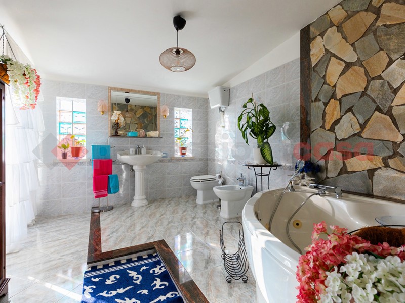 Tor San Lorenzo - Villa singola su lotto di 10.000 mq: ingresso, salone, sala pranzo, cucina, camera, cameretta e bagno con vasca al piano terra; disimpegno, tre camere matrimoniali, bagno con vasca idromassaggio e tre balconi al piano primo. L'immobile si trova a un chilometro e mezzo ca dai principali servizi, quali posta, supermercati e farmacia, a 500 metri dalla fermata Cotral linea F12664 , e a 2,5 km ca dal mare.