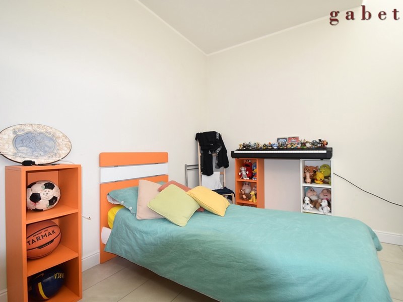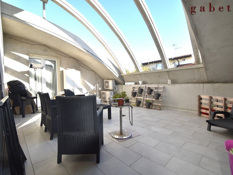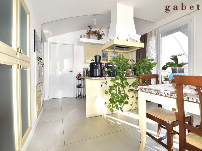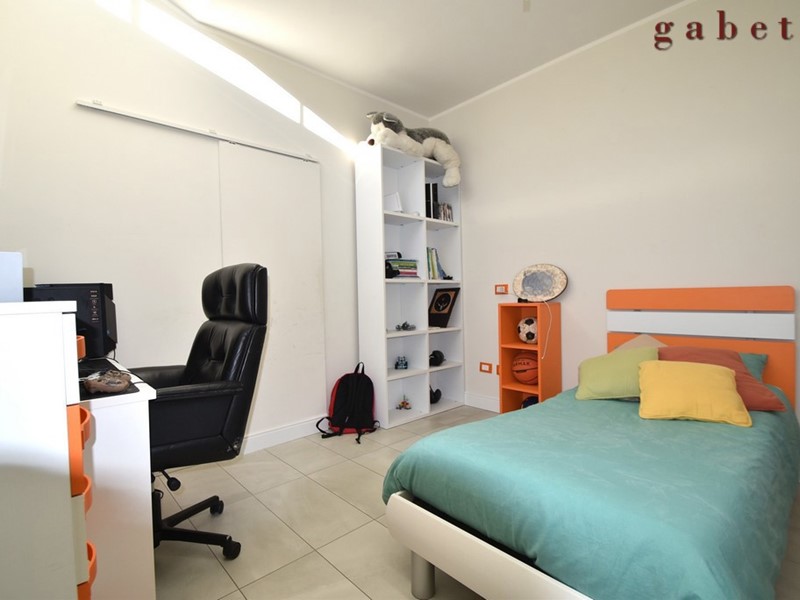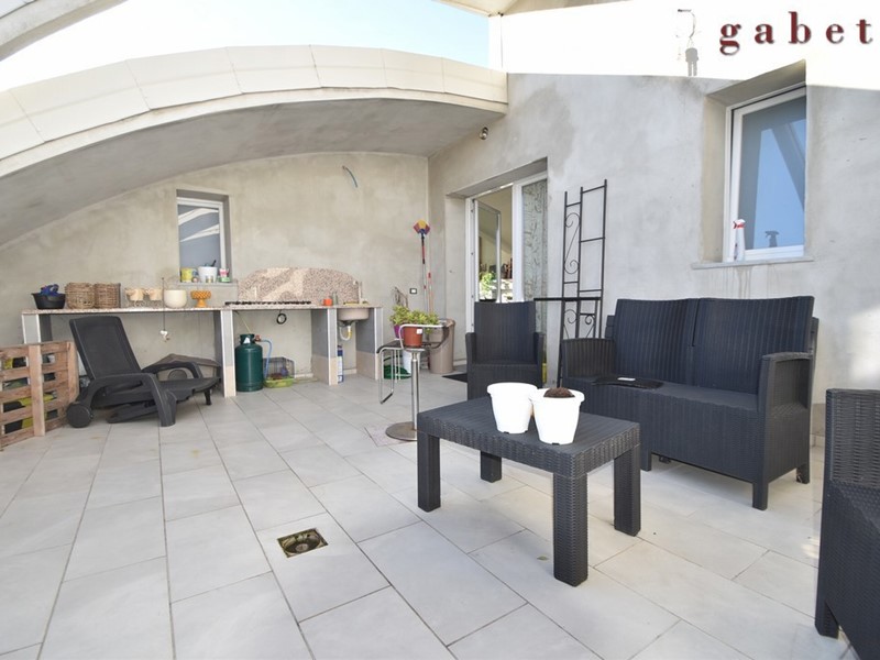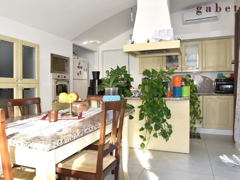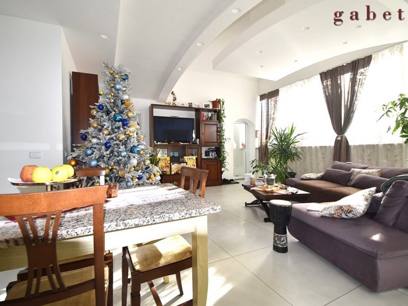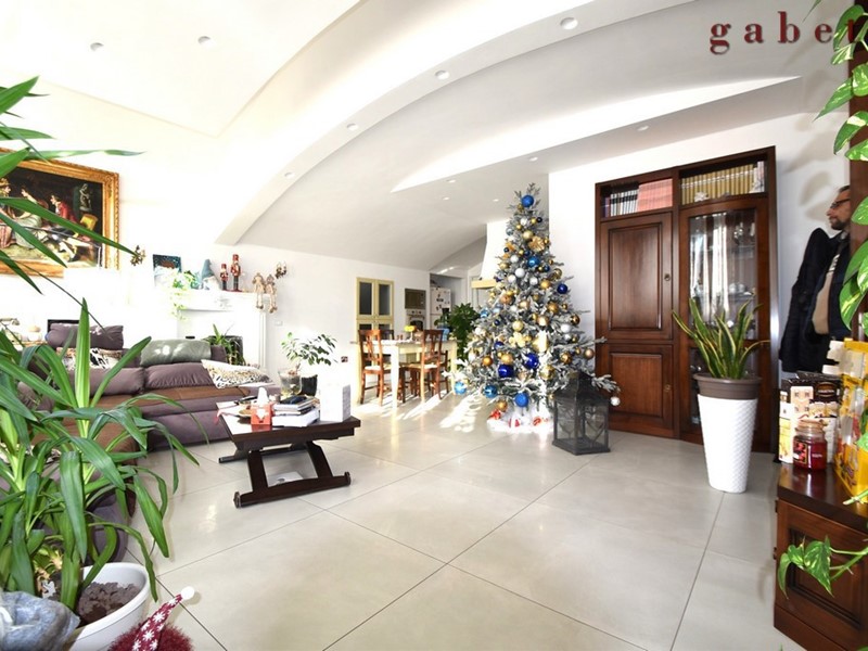 L'appartamento , al quale si arriva tramite comoda scala interna, è composto da ingresso sull'ampio soggiorno con camino, cucina a vista, ampio terrazzo di mq 50 , camera da letto con cabina armadio, cameretta , studio e servizio.