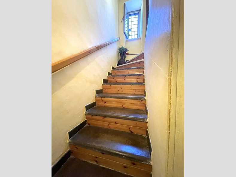 Al primo piano, una spaziosa camera da letto doppia con stanzino adiacente ti aspetta, offrendo comfort e praticità. Il vero gioiello è l'accesso al lastrico solare, dove potrai godere di una vista panoramica mozzafiato sul centro storico e sul mare. Sebbene l'appartamento sia nello stato originale e necessiti di ristrutturazione, rappresenta un'opportunità unica per creare spazi moderni e personalizzati.