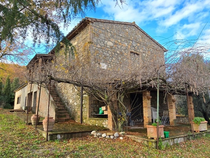 In posizione dominante con affaccio sul bellissimo borgo di Allerona (circa 20km da Orvieto) proponiamo un antico casale in pietra circondato da circa 44 ettari di terreno con piscina e vari annessi .