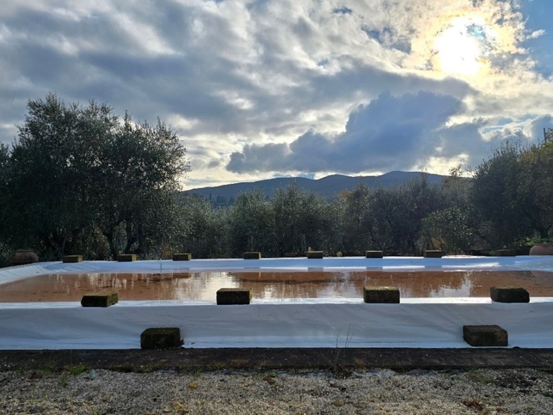 In posizione dominante troviamo la piscina con solarium (vista panoramica sulla valle e il borgo di Allerona) ed un annesso di 94 mq con un ampio porticato.