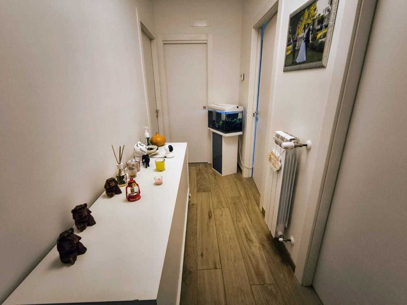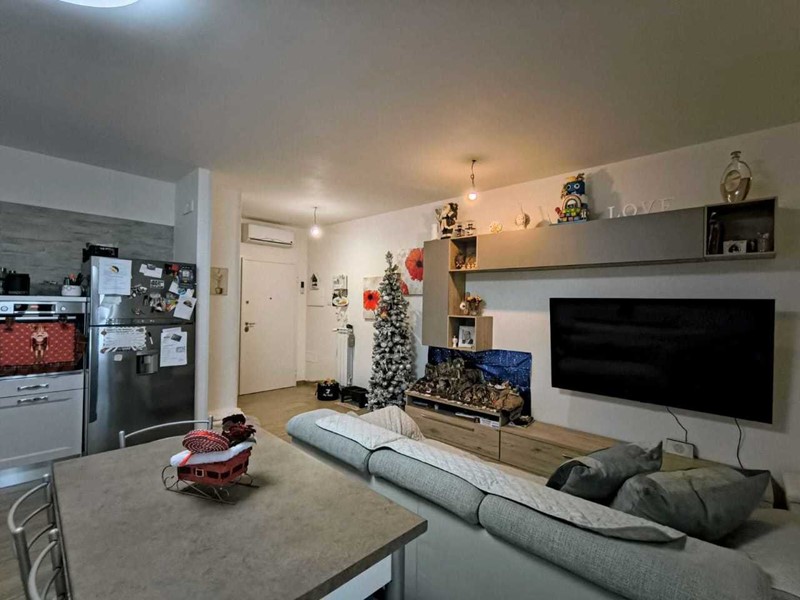 L'appartamento si compone di zona living open space con cucina a vista, disimpegno, due comode camere da letto, due bagni. Doppio affaccio su comodi balconi.