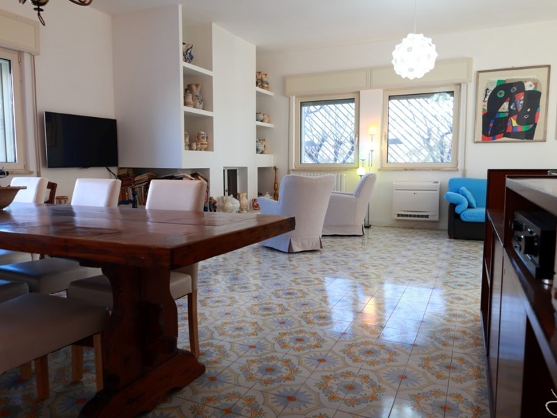 Fiore all’occhiello della villa è la splendida veranda di 70 mq, perfetta per cene all’aperto, momenti di convivialità o semplicemente per contemplare il verde rigoglioso del giardino di 1200 mq, un angolo di paradiso privato che profuma di mare e natura.