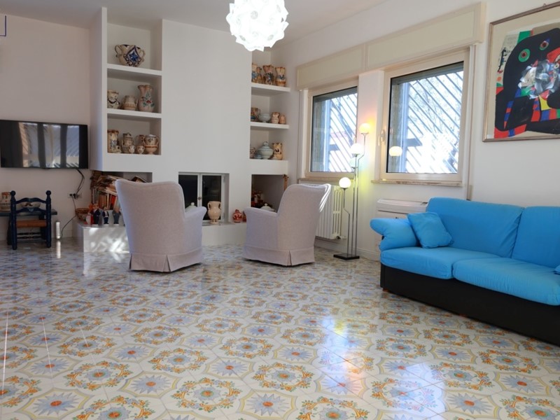 Le pregiate rifiniture in ceramica di Vietri impreziosiscono ogni ambiente, regalando un tocco di classe inconfondibile che riflette lo stile senza tempo di questa dimora.