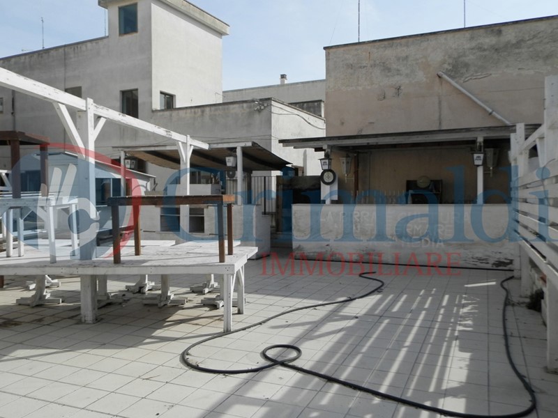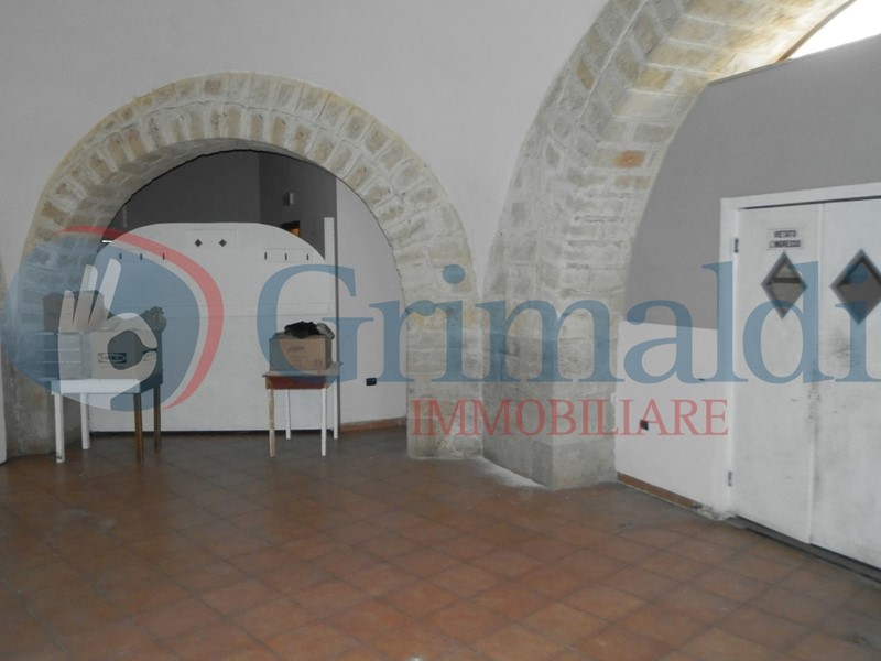 Affittasi in piazza Teatro locale commerciale di 239 mq. con atrio scoperto e terrazza di proprietà esclusiva. Il locale con volte a botte (h=4,60mt) è dotato di wc uomo e donna con antibagno, wc per il personale con antibagno (h=2,40m) e cucina (h=3,25mt.). Di pertinenza ulteriore locale deposito/autorimessa di 46 mq. con accesso da via Fabiano n. 19. Disponibilità di canna fumaria.