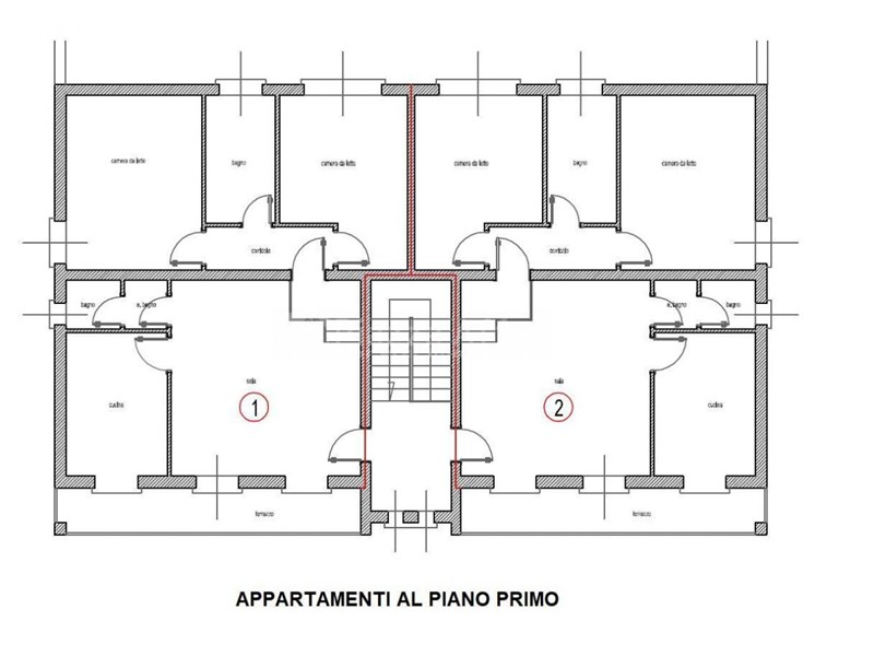 Ogni appartamento è di 95 mq e così strutturato: