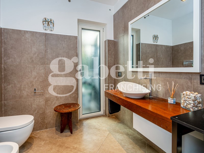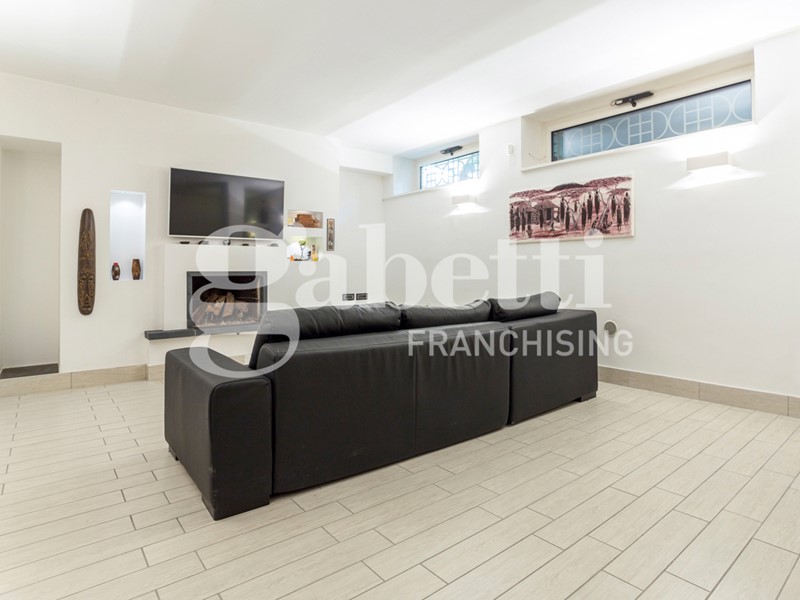 Al piano seminterrato, la villa offre un ampio box auto di circa 35 mq, un ripostiglio e una deliziosa tavernetta con camino. Questo ambiente è perfetto per organizzare cene intime o creare uno spazio dedicato ai momenti di svago.