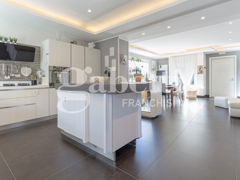 La villa si estende su una superficie di 200 mq, distribuiti armoniosamente su tre livelli, ciascuno progettato per garantire spazi ampi e ben organizzati. Ad accoglierti, un giardino privato di circa 200 mq che circonda l'intera proprietà, regalando un'oasi di pace e riservatezza. Il giardino è curato nei minimi dettagli, con una combinazione di prato verde e zone pavimentate, perfette per trascorrere serate estive all'aperto o semplicemente rilassarti in famiglia.